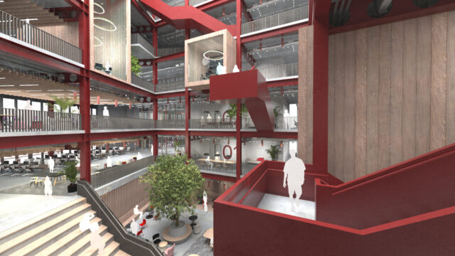 • A proposed EnerPHit retrofit of the former student union building, to create a digital entrepreneurship hub, providing vibrant, flexible, and affordable space, re-using the existing structure and fabric and set to be one of the university’s most sustainable projects,