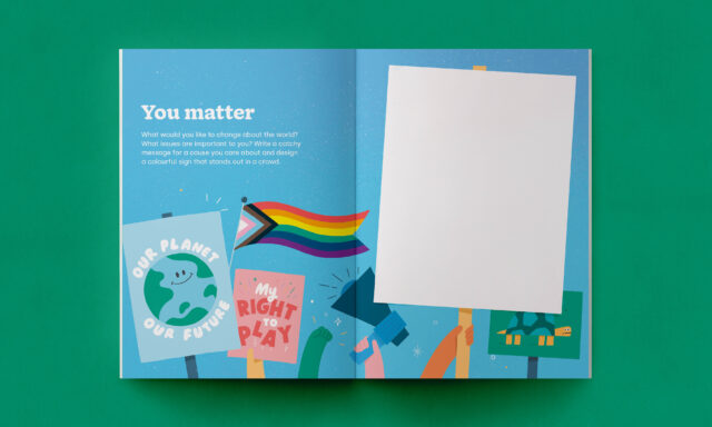 Each edition includes a journal with learning prompts, activity ideas and space for kids to express themselves. The characterful illustration style and playful copy radiate fun in every detail—delivering a bit of joy to kids who don’t have much to feel joyful about.