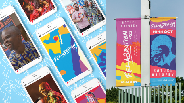 As part of Bature Brewery's expansion efforts, our collaboration with Lemi entailed the creation of their pioneering beer, Shakara, and the development of the visual identity for Felabration 2023, an annual festival commemorating Fela Kuti's legacy. Infused with Nigerian botanical zobo, Shakara pays homage to Lagos's vibrant culture with its vivid pink hue and tantalising notes of strawberry and pomegranate.